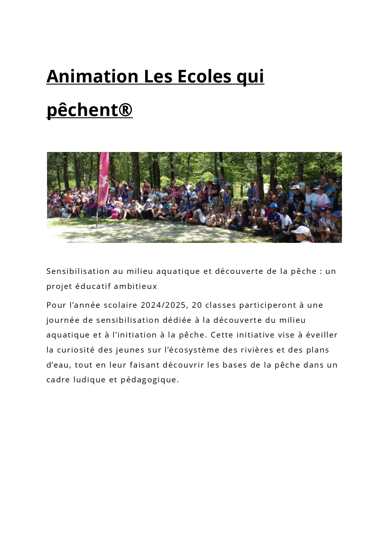 et œuvre pour la préservation des milieux aquatiques, la sensibilisation des pêcheurs et la promotion d'une pêche responsable et durable.