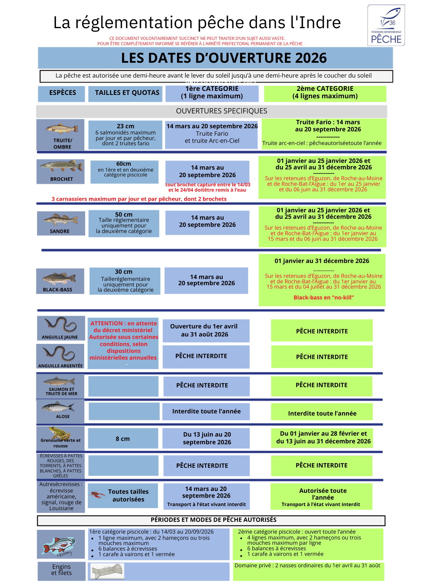 > > > Ouvertures Taille minimale de capture en 2026